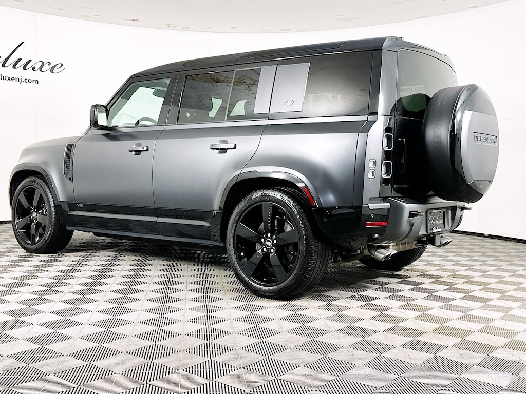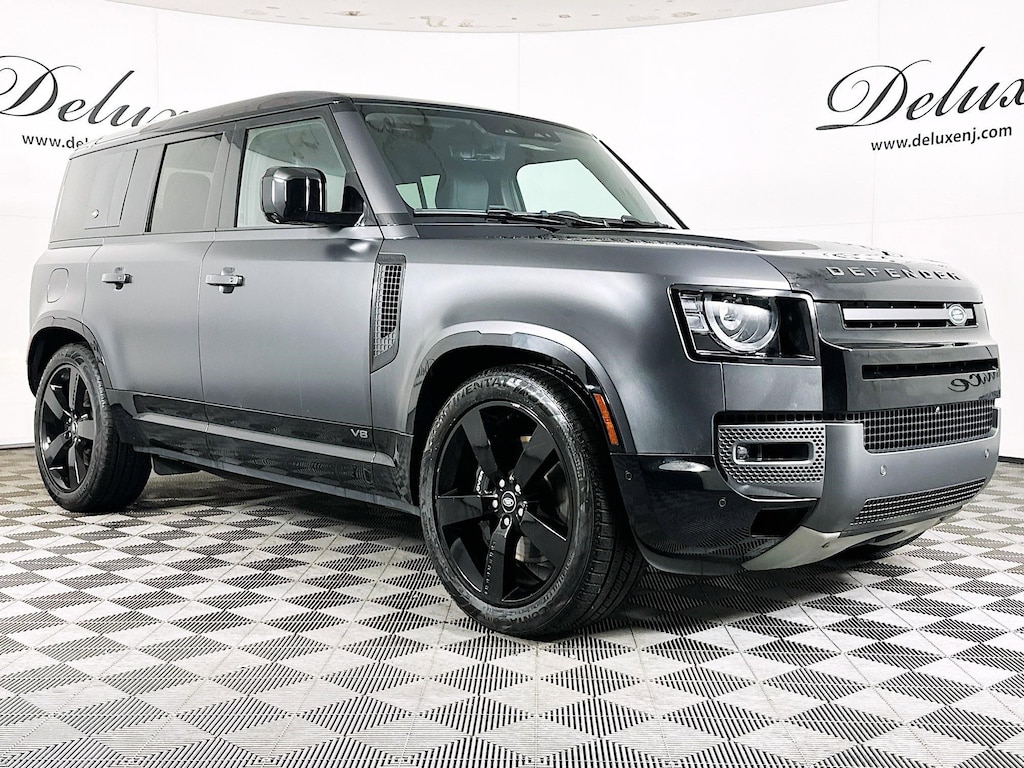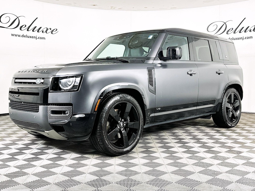 - Trim Highlights – 5.0L supercharged V8 producing 525 horsepower, all-wheel drive, adaptive air suspension, Carpathian Grey exterior finish, Ebony Windsor leather interior, advanced terrain response system, premium Meridian audio system, and signature Defender off-road capability